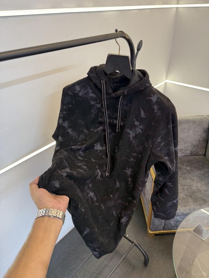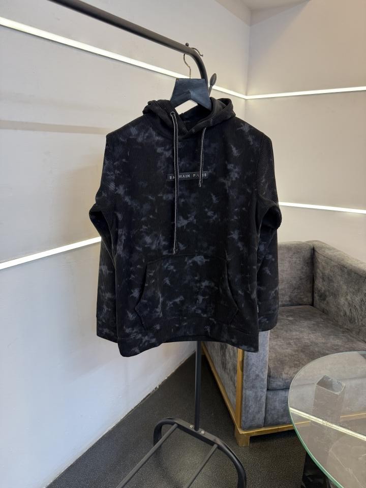 ? *Balmain imported washing cloudy look textured knitted fabric soft feel hoodie with balmain imported pu metal badge on chest front now in stock*?